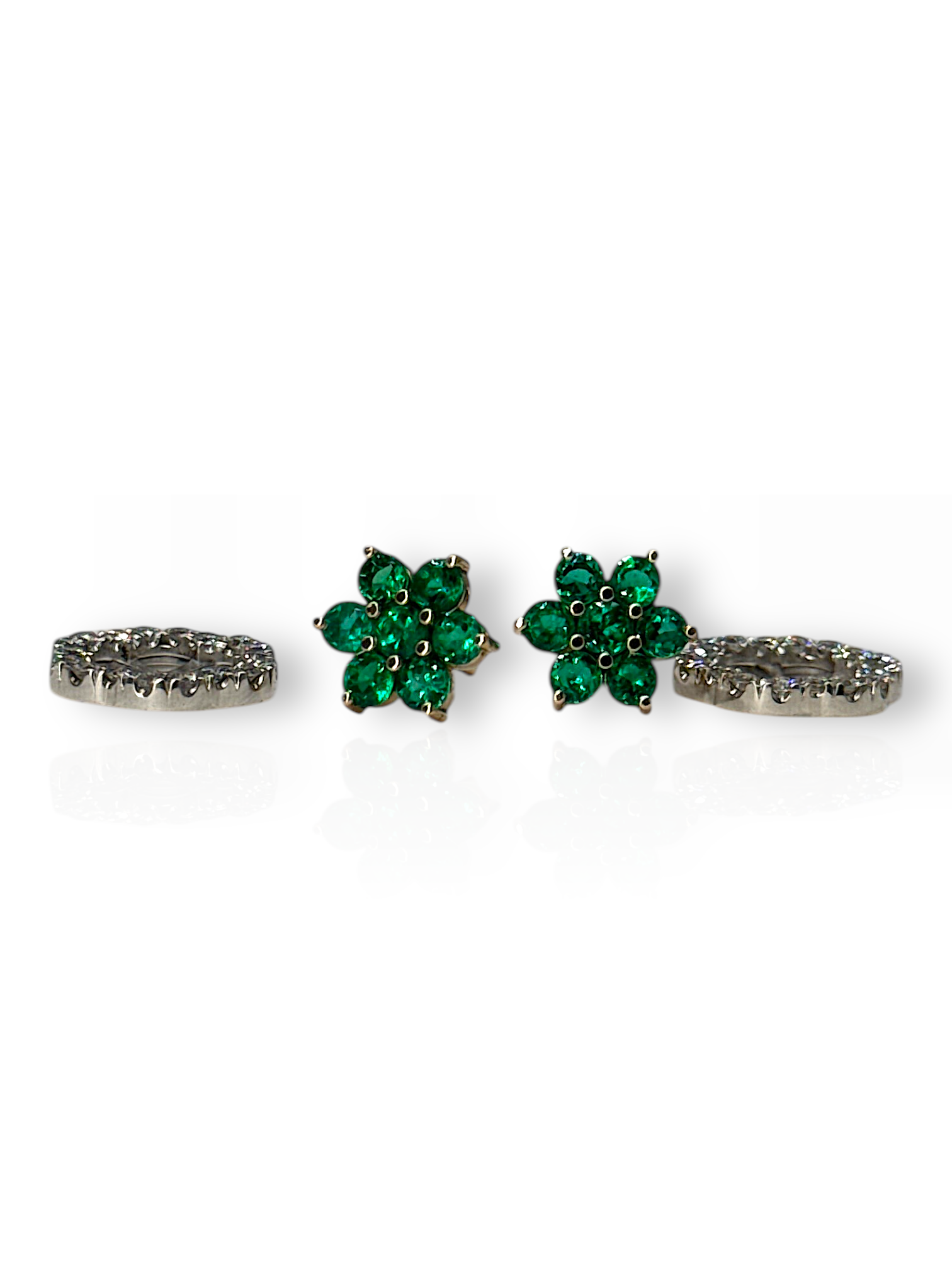 Cluster studs with detachable jackets offer versatile elegance, featuring a sparkling cluster of gemstones at the center and removable halo-style jackets for added drama. Wear them solo for a classic look or with the jackets for extra brilliance—perfect for transitioning from day to night.