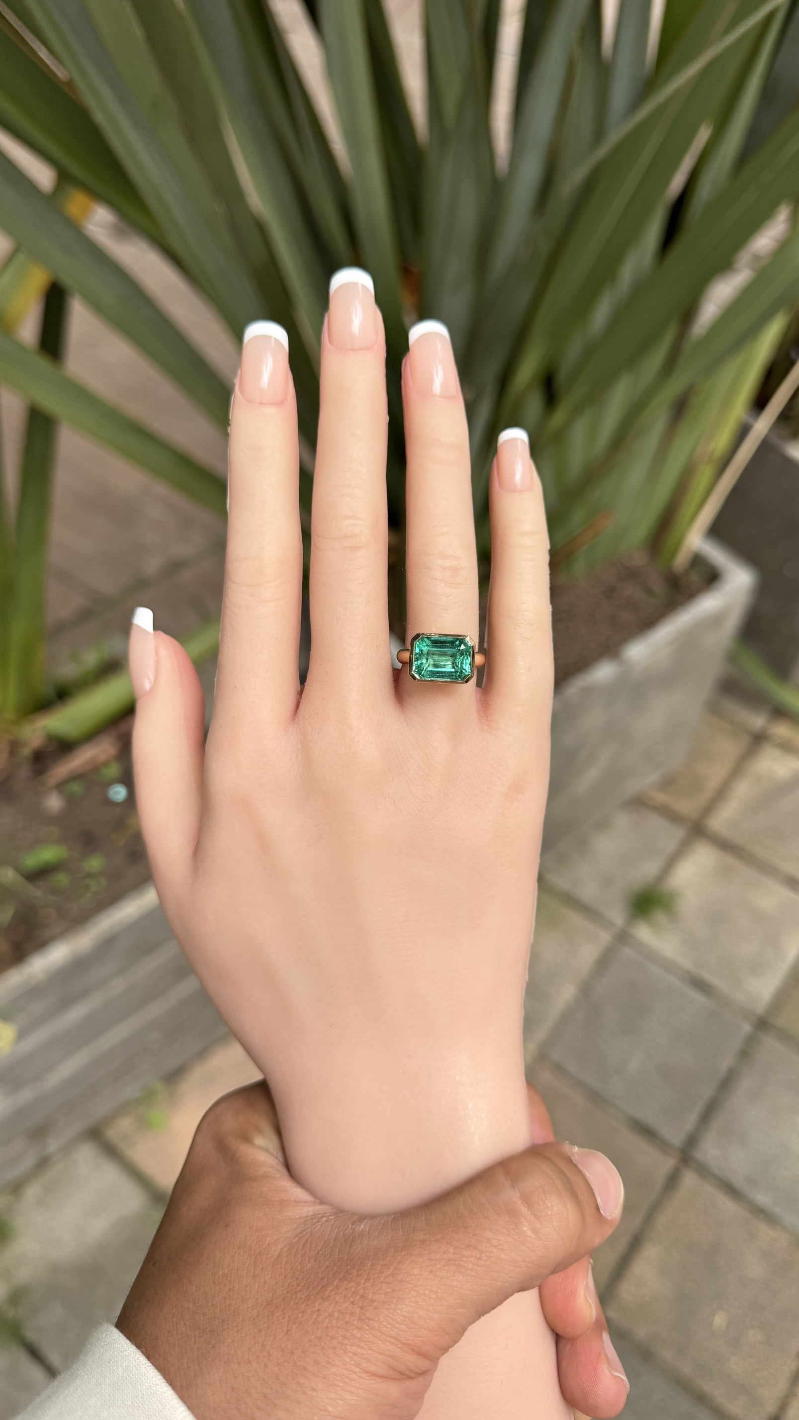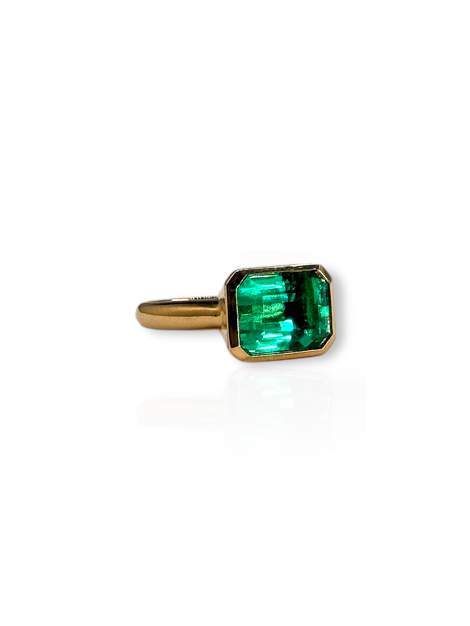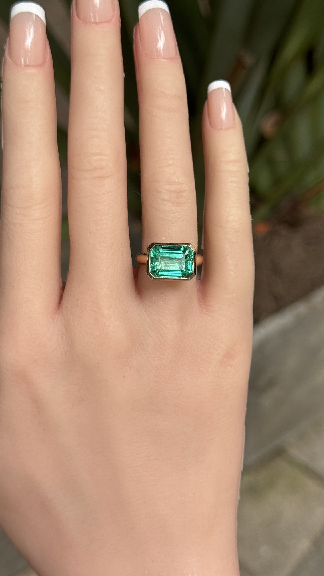 An east-west bezel set ring features a gemstone mounted horizontally across the band, rather than the traditional vertical orientation. The sleek bezel setting securely encases the stone in metal, offering a modern, minimalist look with a smooth silhouette. This design highlights the gem’s shape—especially in ovals, emerald-cuts, or marquises—making it a stylish and contemporary choice for everyday elegance or a unique engagement ring.