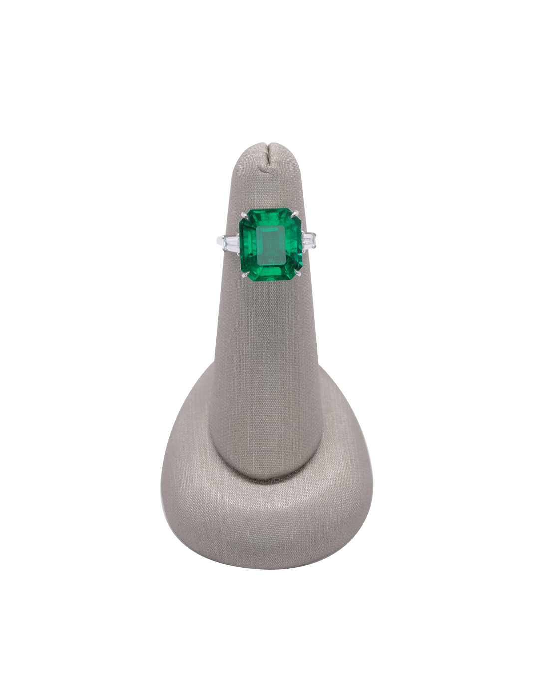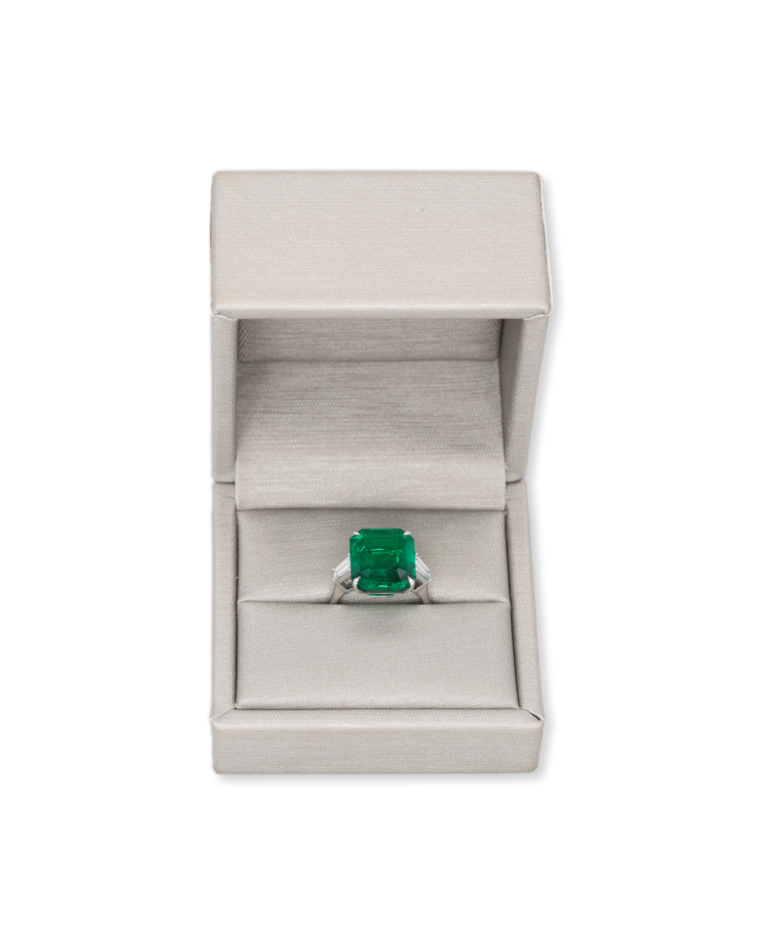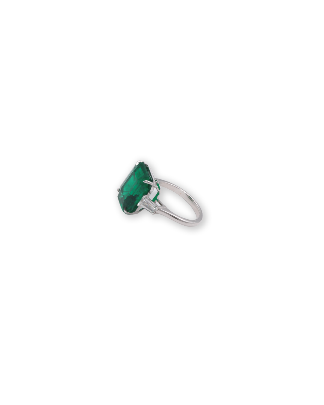 A truly exceptional masterpiece, this ring highlights a rare, substantial emerald of remarkable transparency. Its classic step cut and diamond accents create a sophisticated elegance perfect for defining life’s most significant moments.