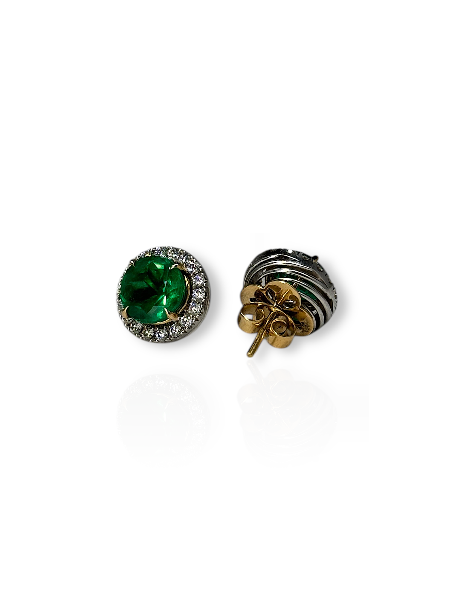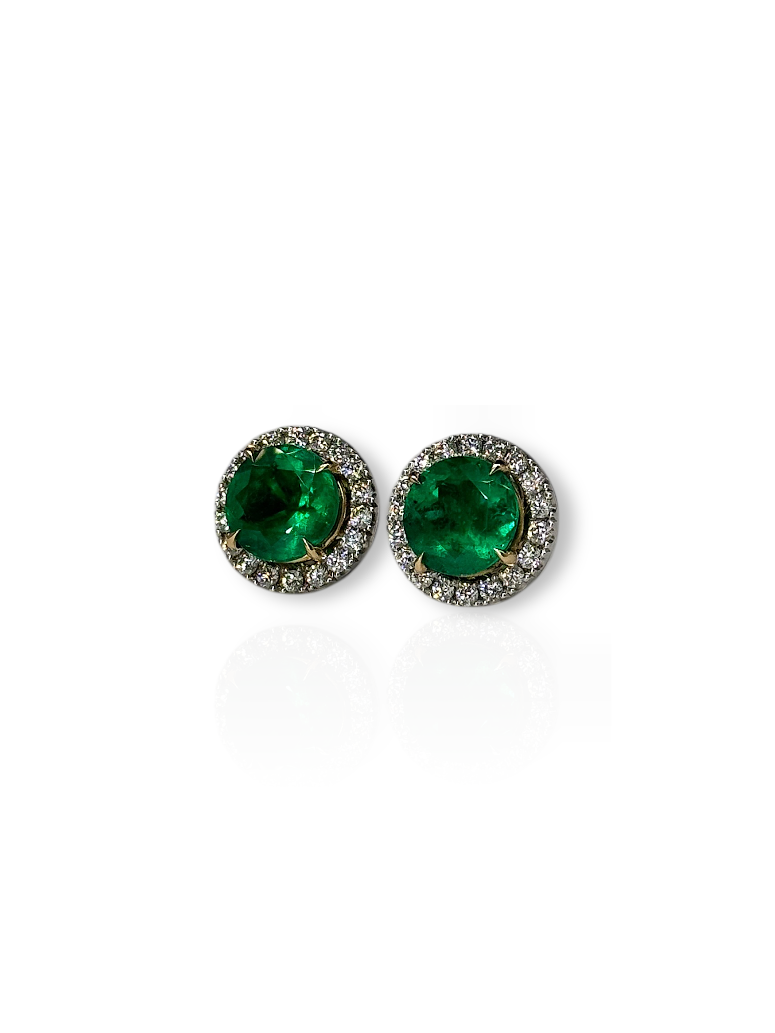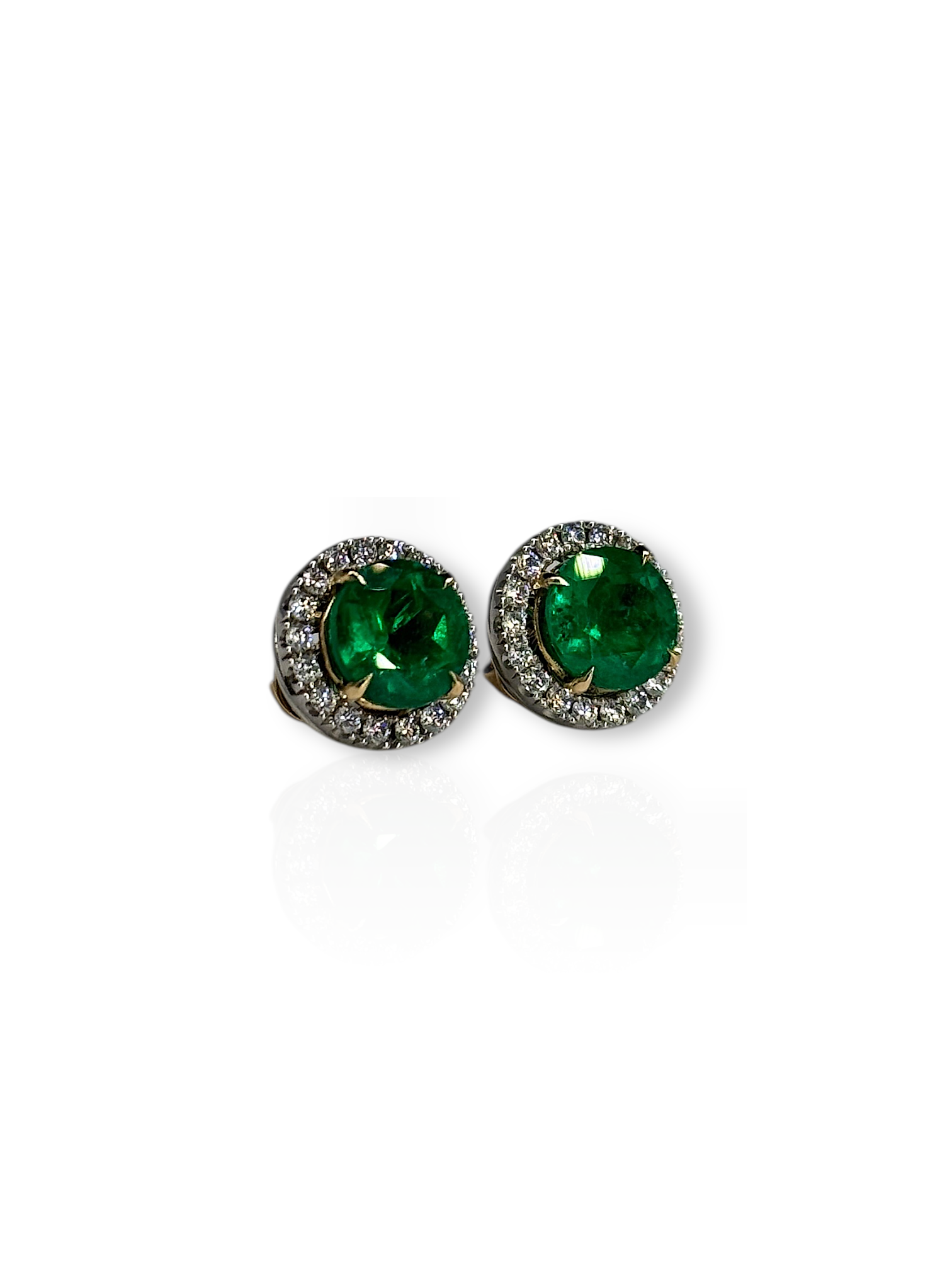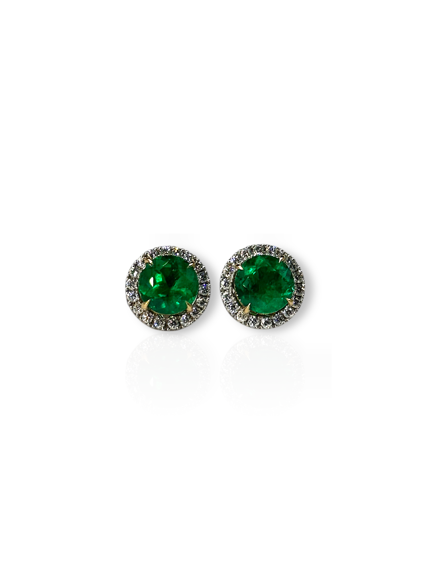 Almost 2 carat each side, gorgeous alpine green colour with natural E/VS diamond jackets. Rounds look good on everyone, safest stud shape! 24,995 USD shipped & certified minor oil.