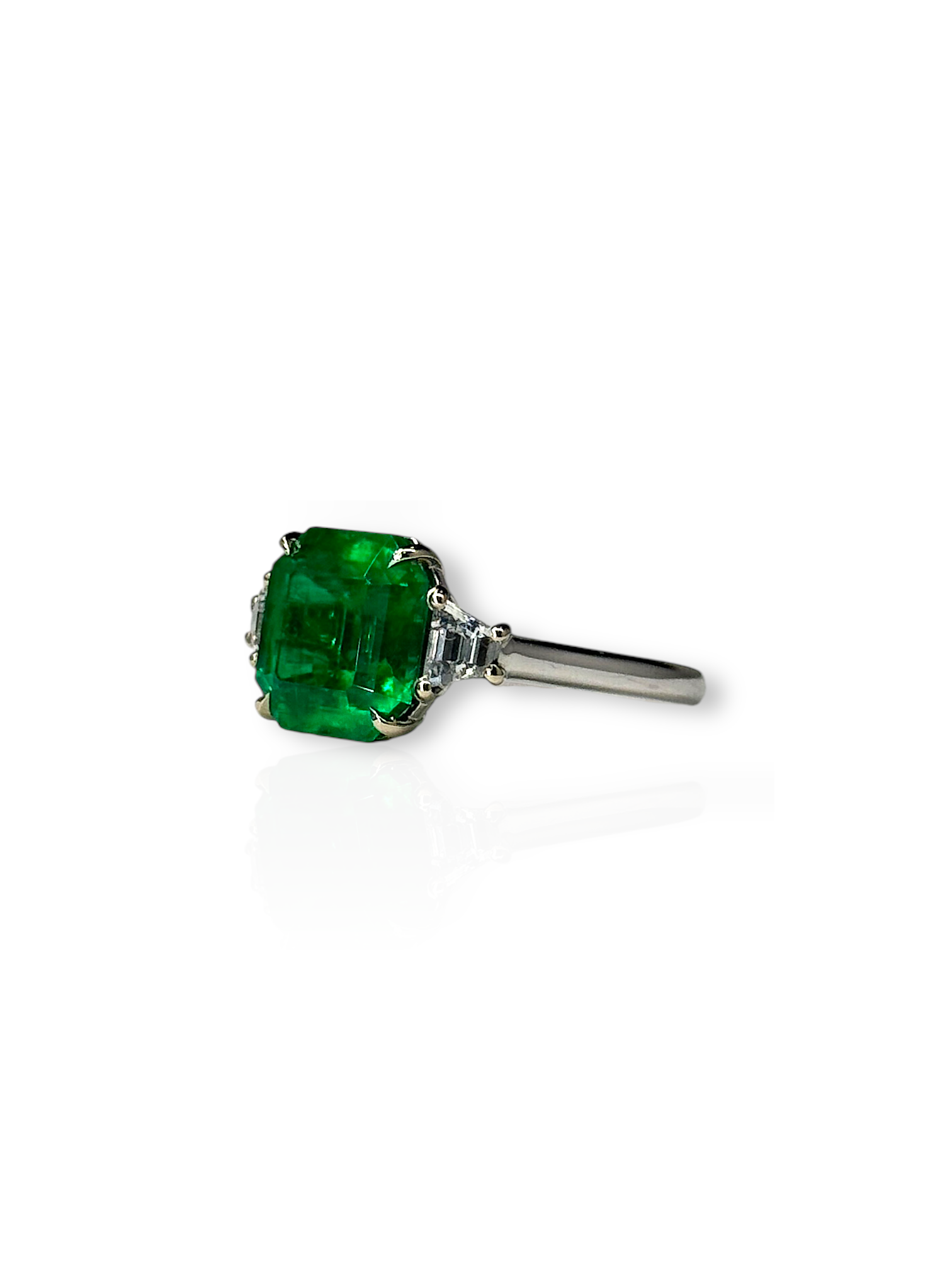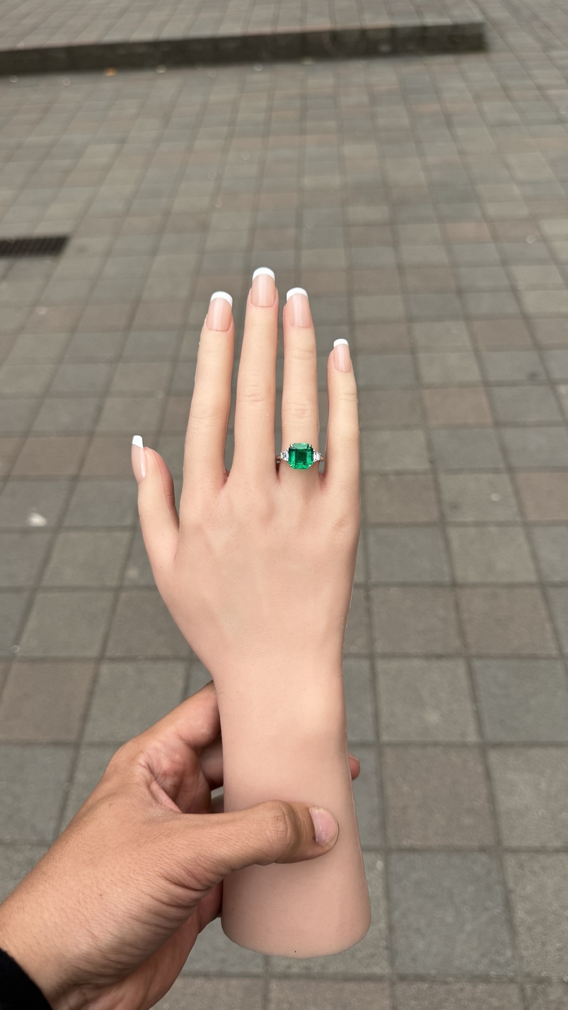 A three-stone Colombian emerald ring showcases the beauty and prestige of Colombian emeralds, known for their vibrant green color and exceptional quality. Featuring a central emerald flanked by two complementary stones—often diamonds or matching emeralds—this design symbolizes the past, present, and future. Set in fine gold or platinum, it blends timeless elegance with rich meaning, making it a perfect choice for milestone moments or heirloom-worthy luxury.